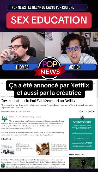 Cette vidéo est un extrait de Pop News épisode 15. Pop News, c’est l’émission qui récap l’actualité Pop Culture du moment. Ici, Adrien et Thomas nous parlent de la saison 4 de Sex Education annoncée comme la dernière sur Netflix.
