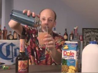 We’re teaching you how to make the mixed drink, Sex on the Beach. Odd name, great flavors. The mix of rum, peach schnapps and juices make this a worth-while party drink.